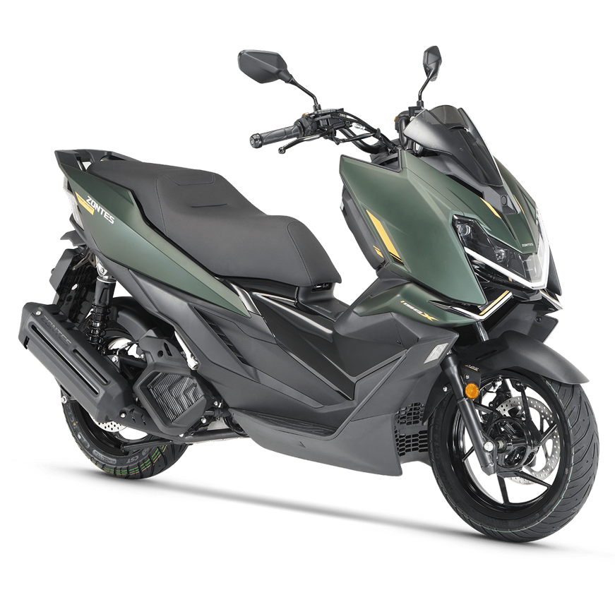 En tres colores con acabado mate: negro, marrón y verde, el Zontes 125X llegará esta primavera a España con un PVR de 2.688 €. Reserva ya tu unidad y sé de los primeros en disfrutar del scooter que ha redefinido las reglas.